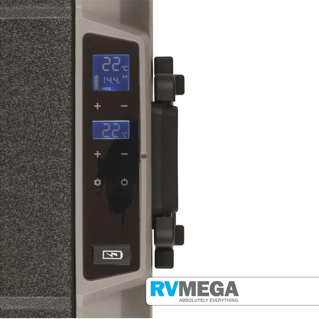An LCD screen with touch controls allow you to set the temperatures between -20°C and +20°C (with ambient temperature at 25°C). A separate temperature setting sets either the left or right section to be up to 15°C colder than the chiller section. The display also indicates the battery voltage.
