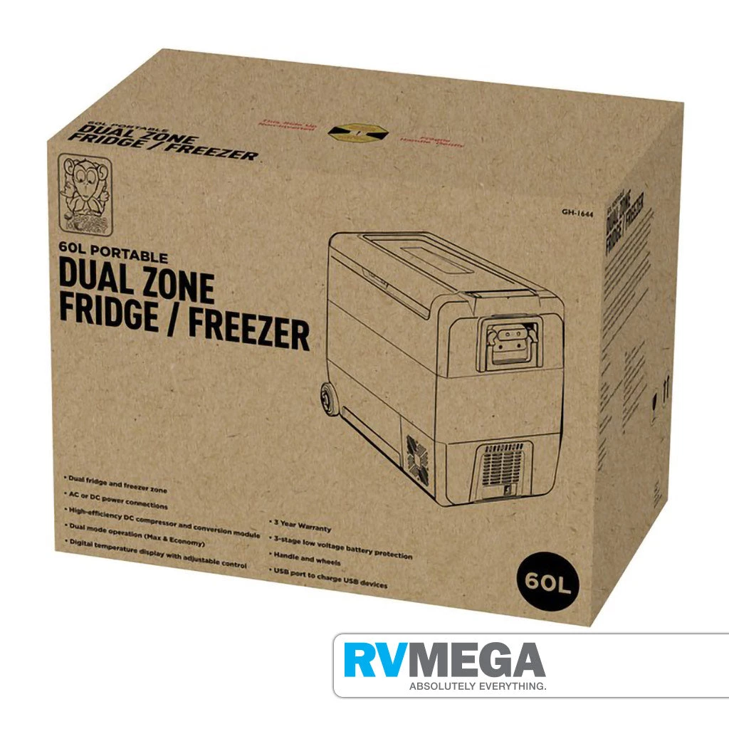 Brass Monkey 60 litre fridge/freezer for car, 4WD, or RV use. Dual zone with controls to set for optimal temperature for different applications.