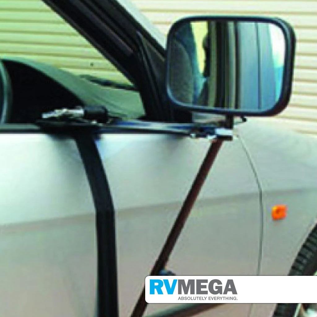 Ratchet Strap Type Door Mirrors – To fit most vehicles. They fit firmly and offers excellent vision. The large mirror head is attached to an adjustable extension arm.