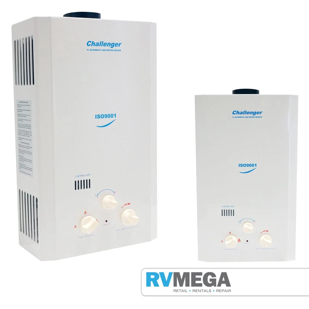 The Challenger 7l continuous flow LPG water heaters are designed for use with low pressure water systems. Efficient, instantaneous, LPG gas water heater will heat water by 25Β°C, providing continuous hot water on demand making the Challenger 7L an ideal unit for use in boats, caravans, buses, motorhomes, RV’s, horse-trucks where a shower, bathroom mixer and kitchen mixer are required.