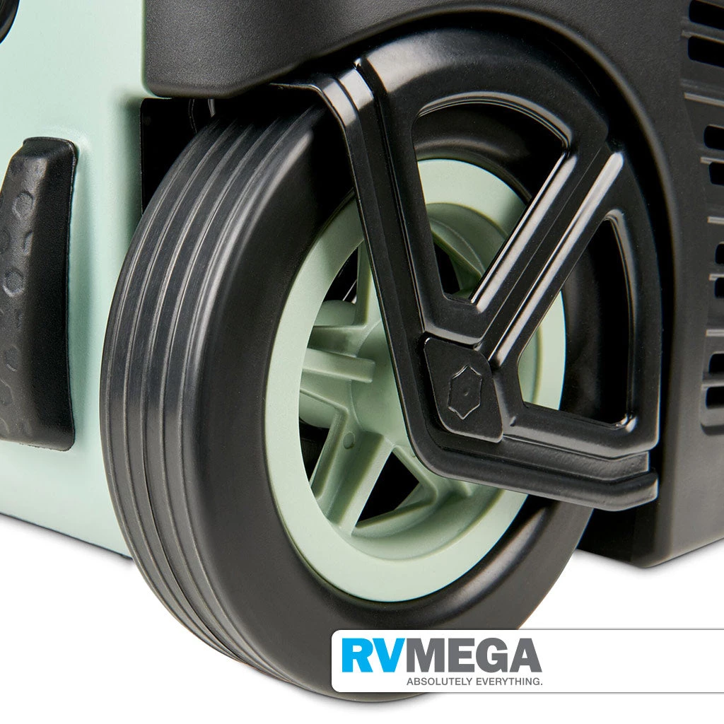 The Dometic PGE121 portable inverter generator is the ideal power source for long camping and RV trips where power isn’t readily available. Thanks to the powerful pure sine wave technology, the PGE121 can generate power to charge RV house batteries and power sensitive electronic appliances such as RV air conditioners, laptops, portable fridge/freezers, and power tools. At the center of the PGE121’s design is portability, with an extendable handle and sturdy wheels built-in for ultimate convenience.