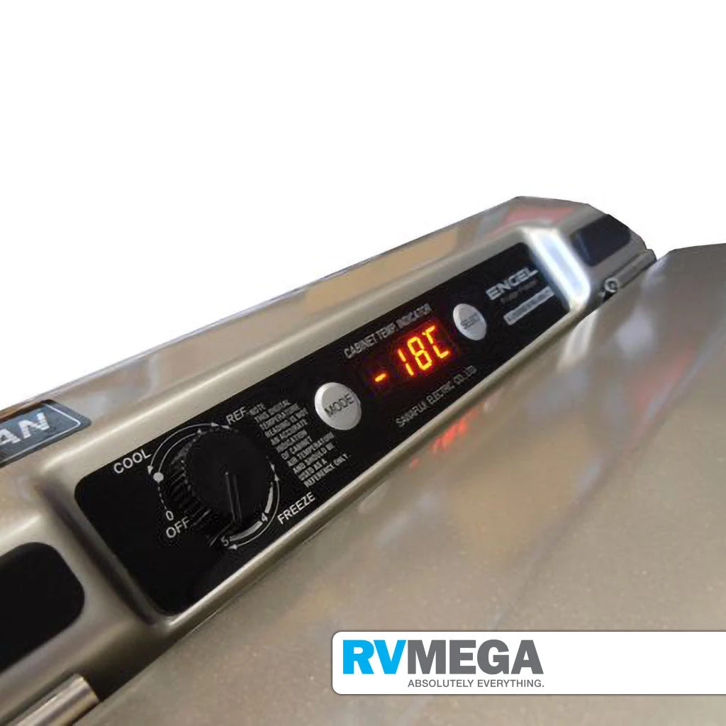 Digital Platinum Series. New User friendly digital controls with built in battery monitor. This unit has all the features, efficiency and reliability you have come to expect from ENGEL , including being powered by the world renowned ‘Sawafuji Swing Motor’. Look for the distinctive Platinum finish at your local ENGEL retailer. A rugged steel casing, steel lid and steel handles which double as tie down points. Now with fixed lid hinges and the optional removable hinge included. Supplied with both cords, the 12 volt cord that plugs straight into your vehicle’s cigarette socket and the 240 volt lead with three pin plug. Auto switching as standard removes the need for the user to switch power sources manually.