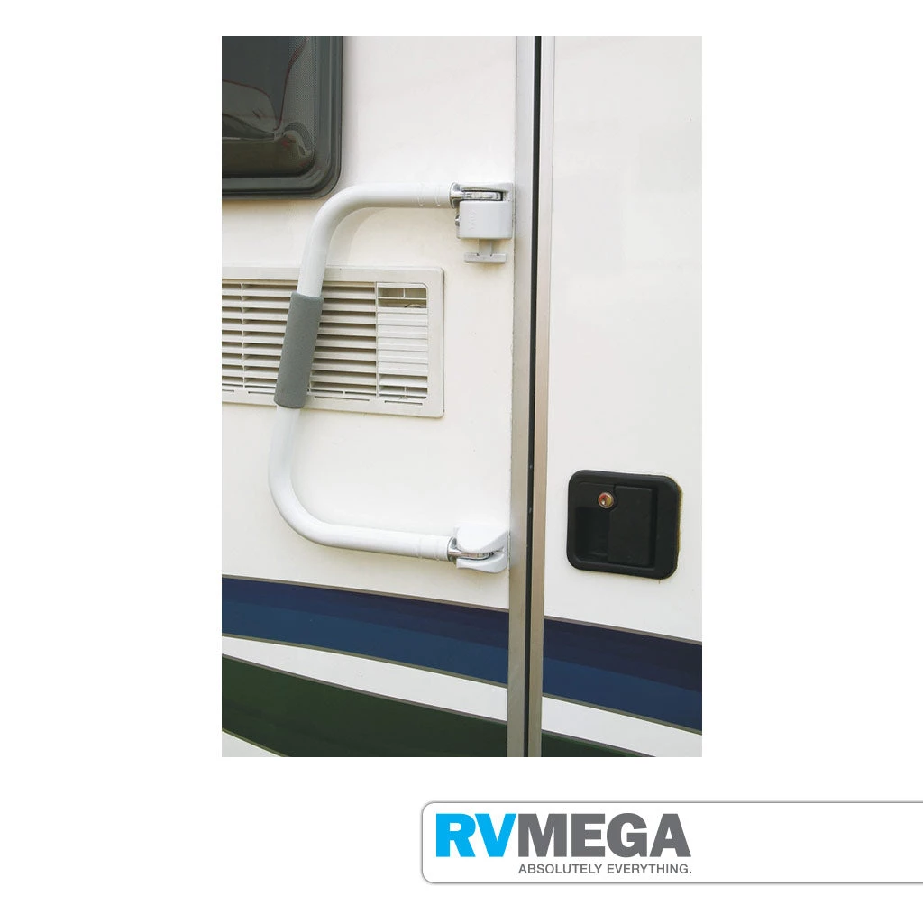 The Fiamma Security Handle is designed to lock across your main door to provide extra security. When closed back onto the door, it works as an antitheft device and prevents accidental opening of the door when travelling. Additionally, when open it increases your safety when getting in and out of the RV. The handle is made out of lightweight, yet strong aluminium and is suitable for doors opening both left and right.