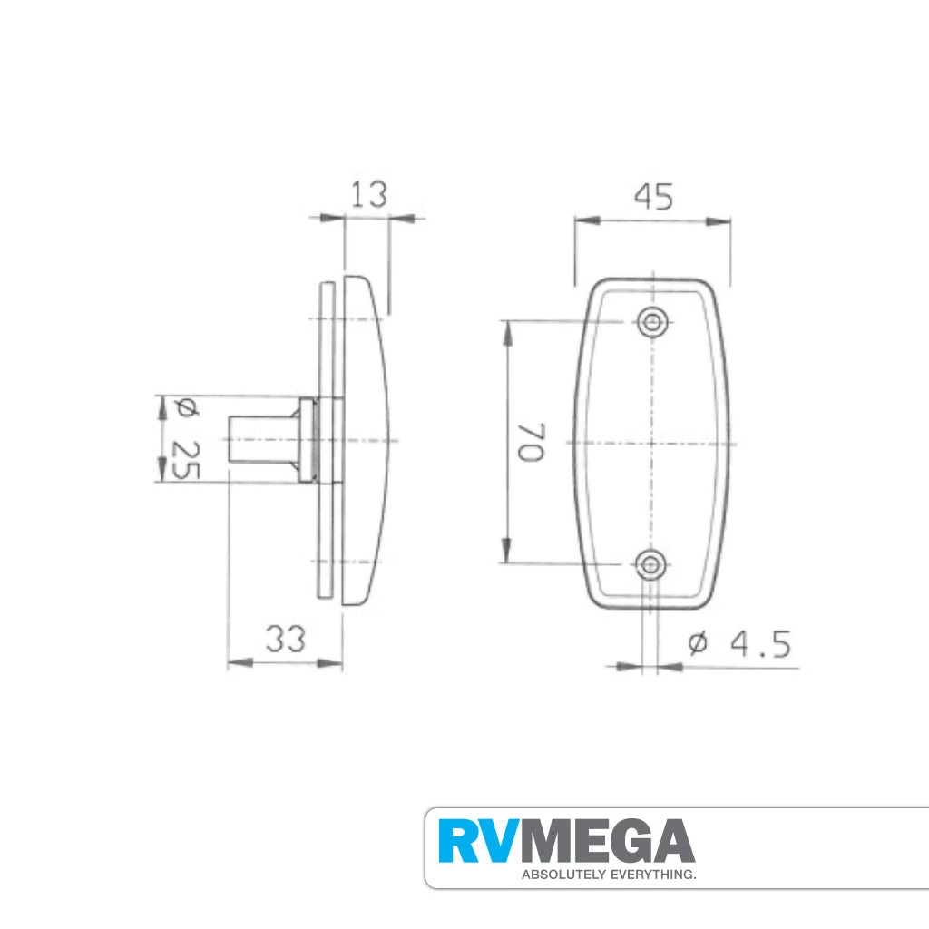2 x screw mounting (70mm Between screw hole centres, screws not supplied)