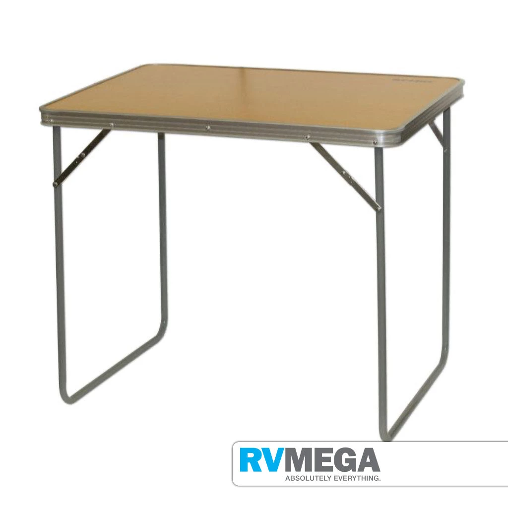 Compact and lightweight in design, this folding table has an MDF top and brushed aluminium legs and folds easily.