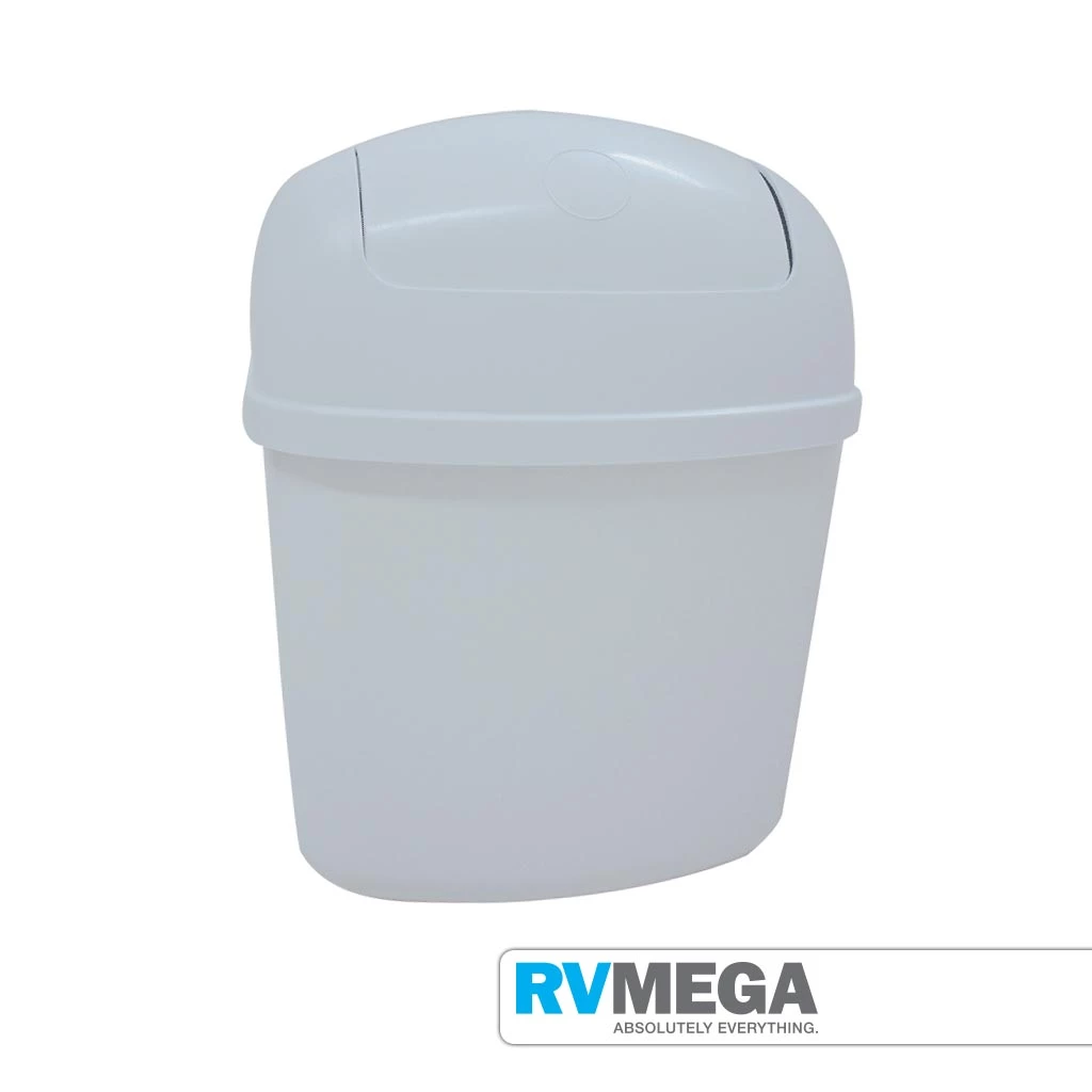 A compact trash can that can be conveniently mounted onto a wall or inside a cabinet. Stays in place when traveling.