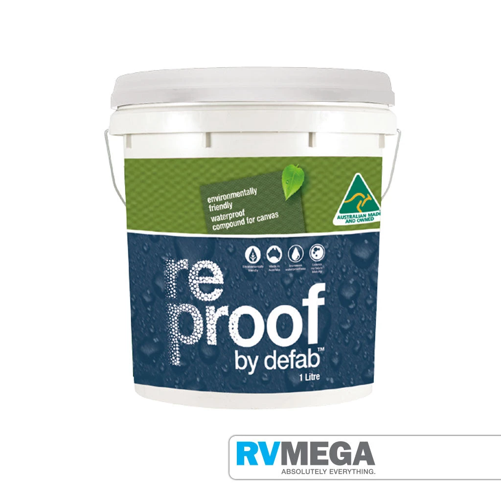 DEFAB RE-PROOF For use on Poly/Cotton blended canvas. This product increases and rejuvenates canvas life. It increases their waterproofness and helps repel mildew, dryrot and fungus.