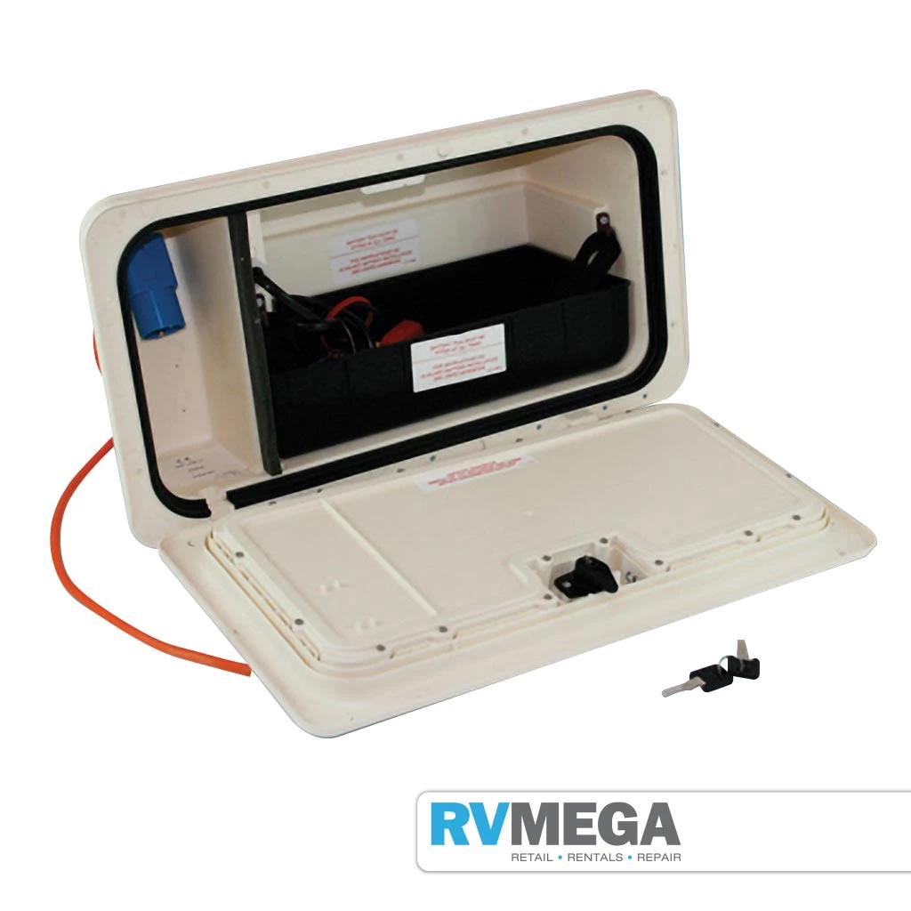 RV MEGA Battery Box & Door With 240v And 12v Fittings