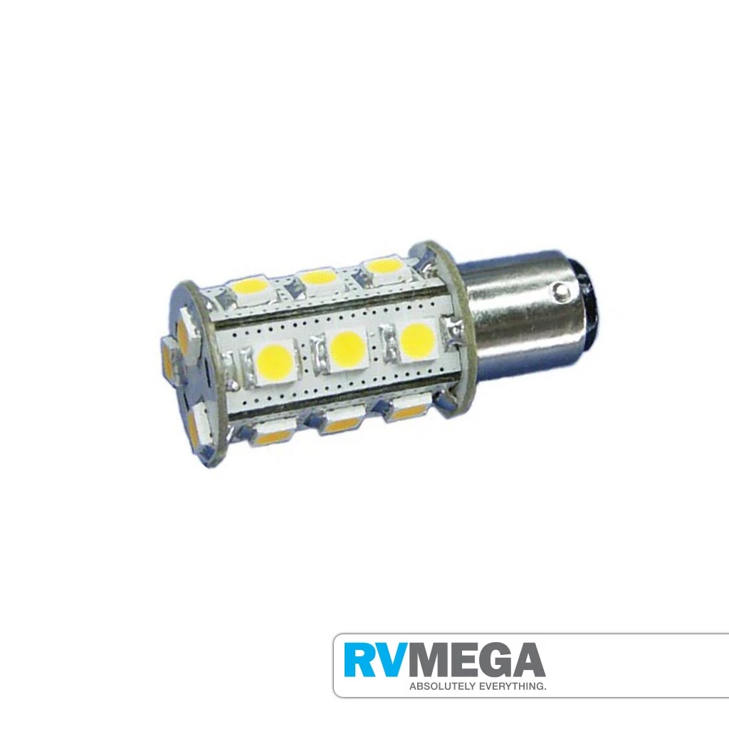 Bayonet single contact, parallel pin. The 18 LEDs are located 3 on 5 sides (15) and 3 on the end. Similar light output to a 25 Watt incandescent bulb. These high quality SMD LED replacement bulbs save power. Energy efficient, they last up to 50 times longer than a standard bulb. The latest SMD chip technology is used that provides the highest light output to consumption ratio available today.