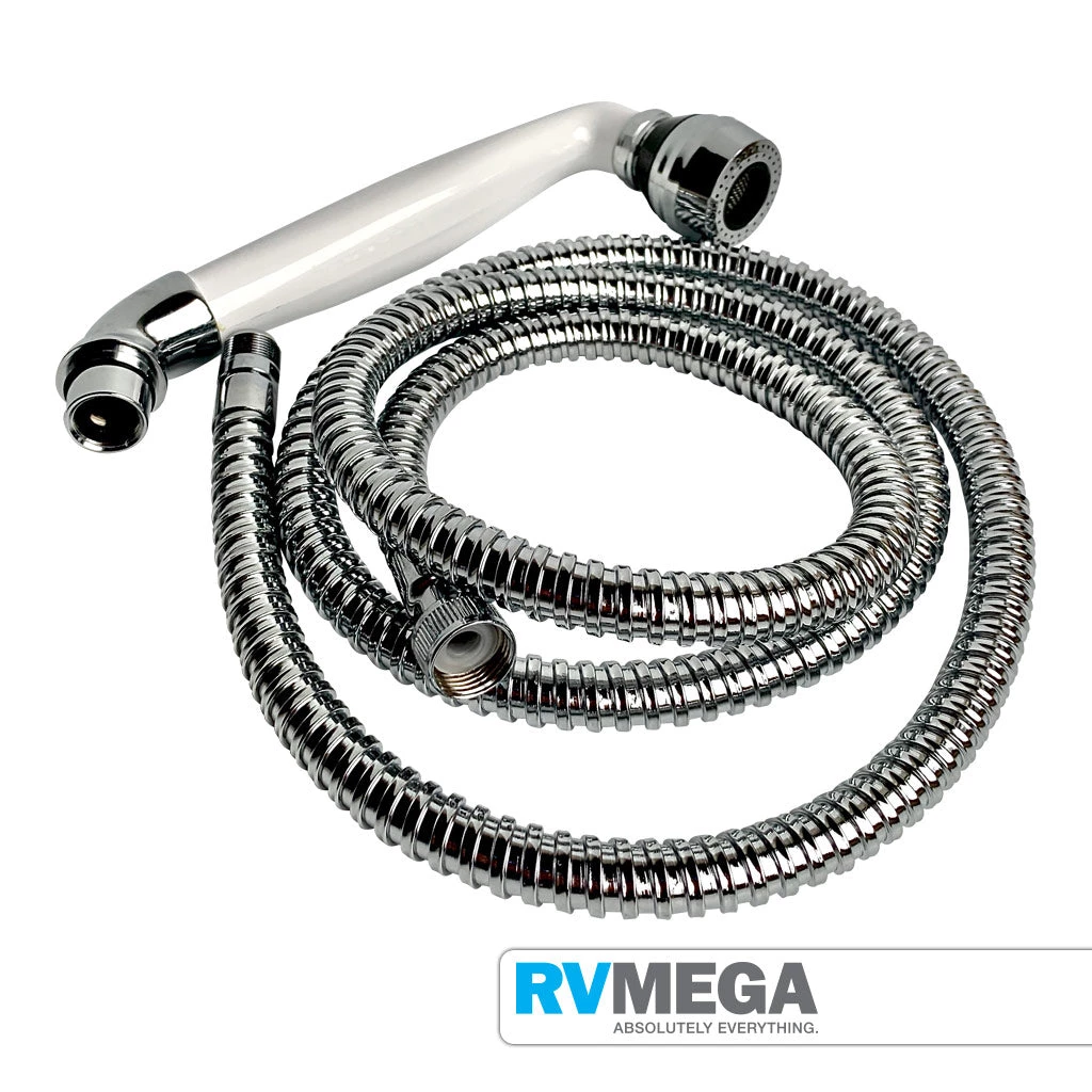 This elbow shower set comes complete with adjustable flow rate nozzle. Heavy duty construction.