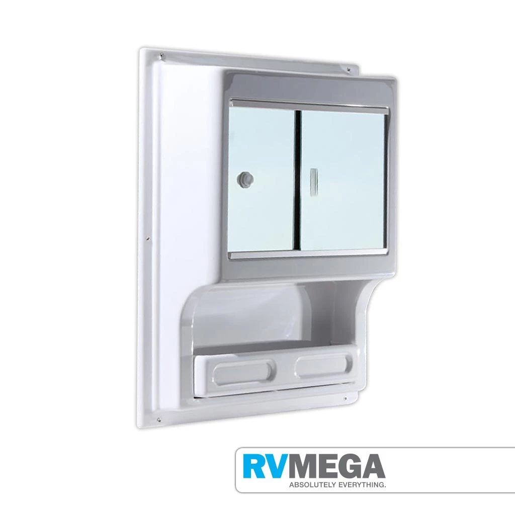 Twin mirror sliding doors cabinet complete with a travel lock to ensure it remains secure whilst out on the road or waters.