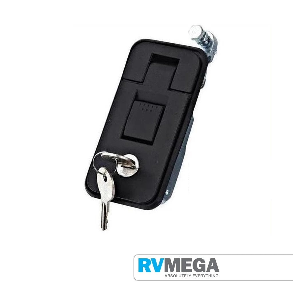 Small, very popular, robust key locking compression lock, largely used on lockers and toolboxes.