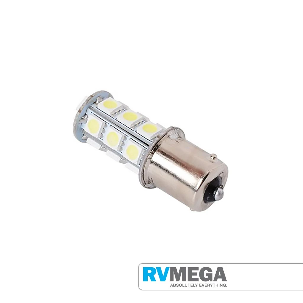Bayonet single contact, parallel pin. The 18 LEDs are located 3 on 5 sides (15) and 3 on the end. Similar light output to a 25 Watt incandescent bulb.