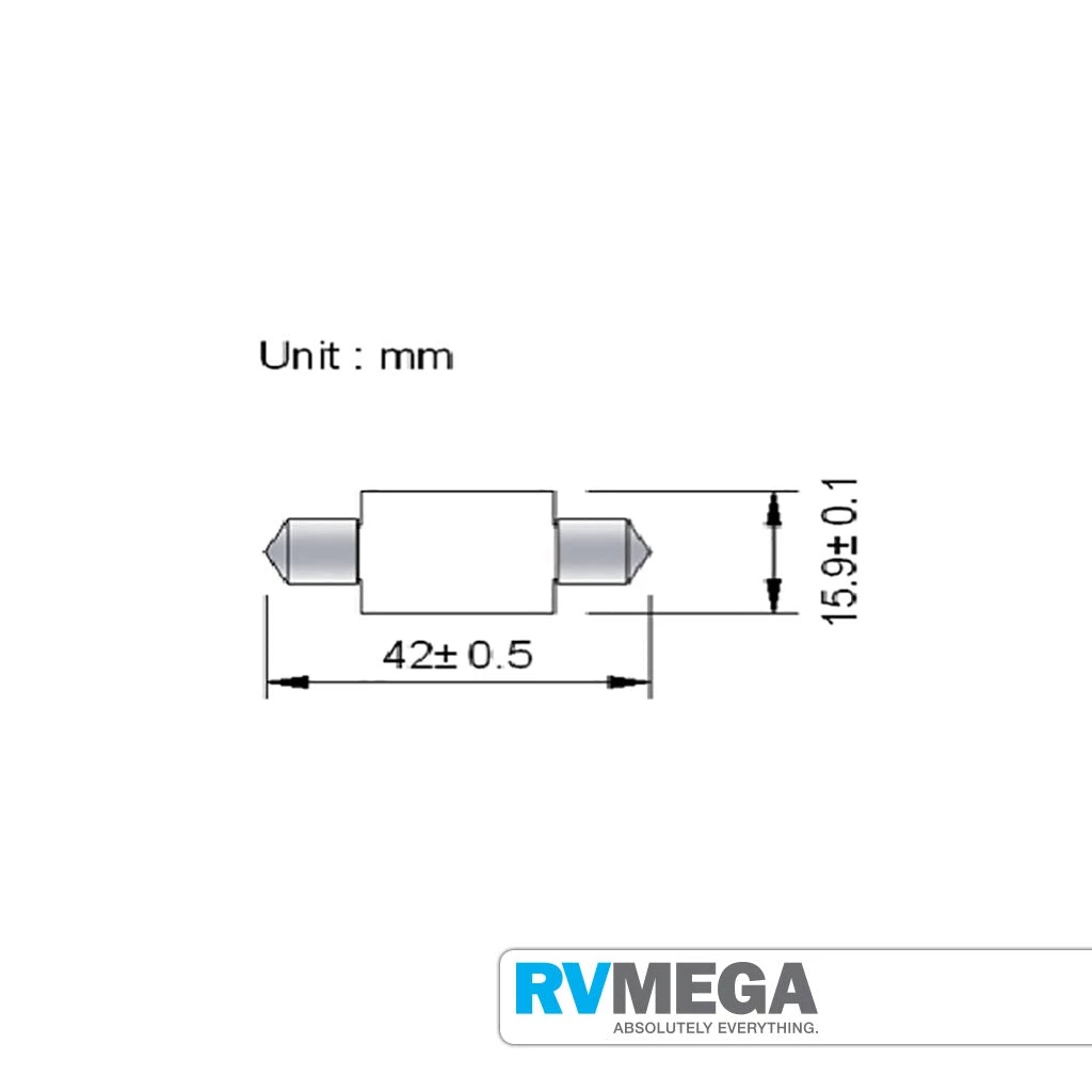 Festoon LED bulbs replace the common festoon bulbs that are used in many lighting applications including automotive and marine. The 6 LEDs in this 42mm festoon are arranged on one side. Light output is similar to a 10-20 watt halogen. These high quality SMD LED replacement bulbs save power. Energy efficient, they last up to 50 times longer than a standard bulb. The latest SMD chip technology is used that provides the highest light output to consumption ratio available today.