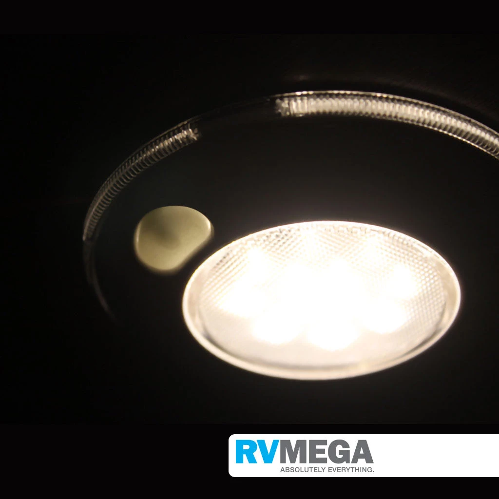 This smart round surface mount interior light has extremely low power consumption, and is an excellent general light that you won’t have to worry about leaving on, draw is less than a tenth of an amp at 12 volts! Performance is similar to a 10 watt halogen, similar to a courtesy light in a car, it’s not really intended as a task/reading light.