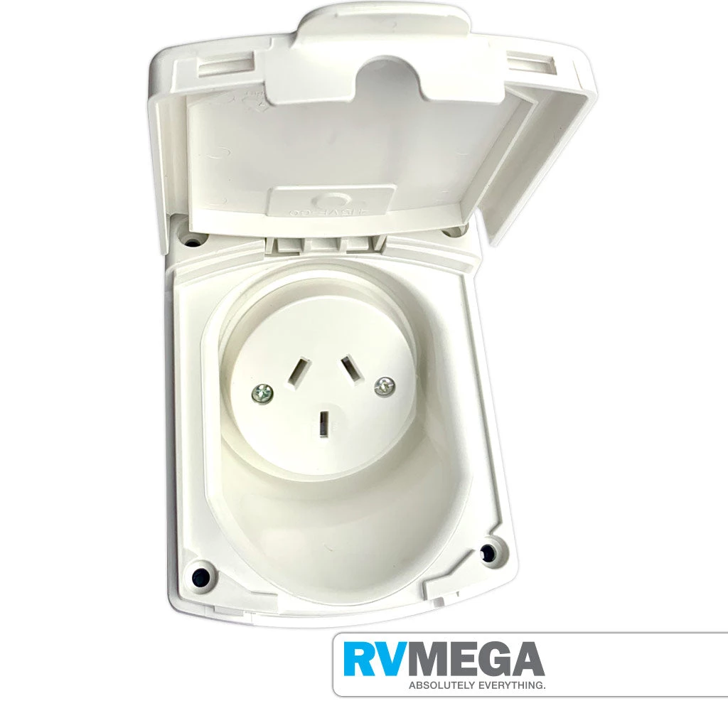 The Clipsal External 10amp Power Inlet is designed to be fitted on most modern caravans, campers and motorhomes and is used to plug electrical appliances into the van, such as BBQs, stereos and lights.