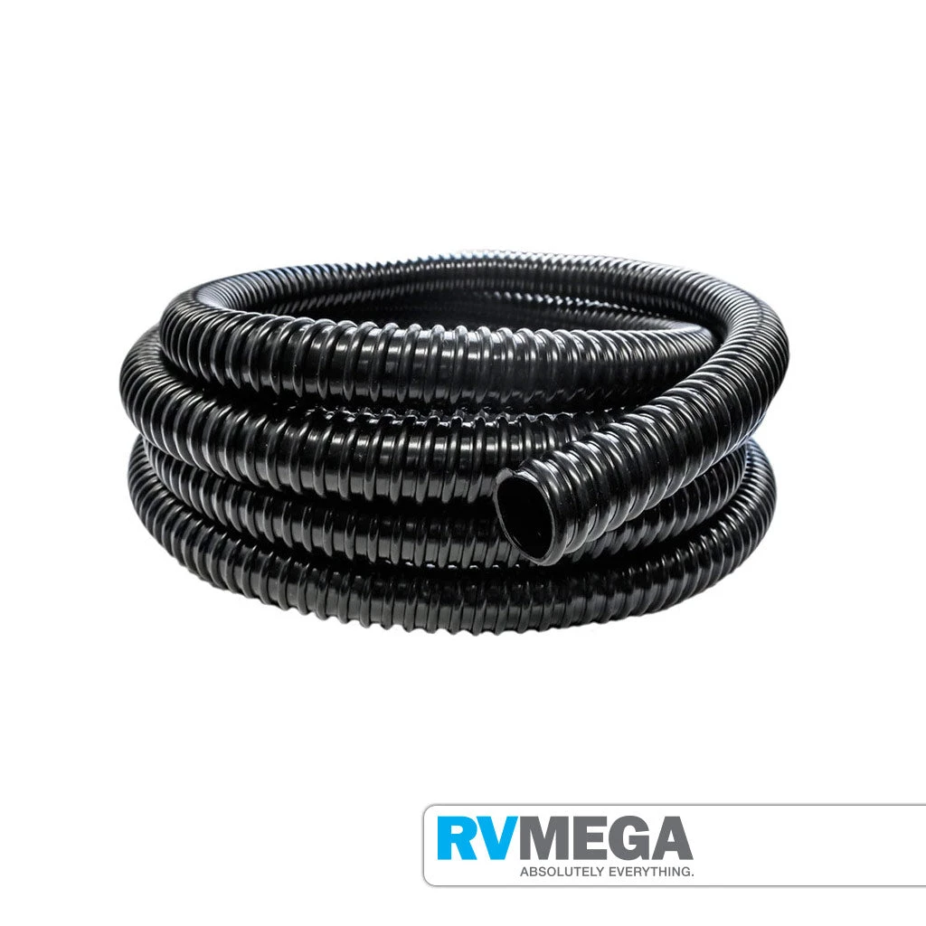 A Black convoluted flexible waste hose for use in kitchen sinks 20mm internal diameter.
