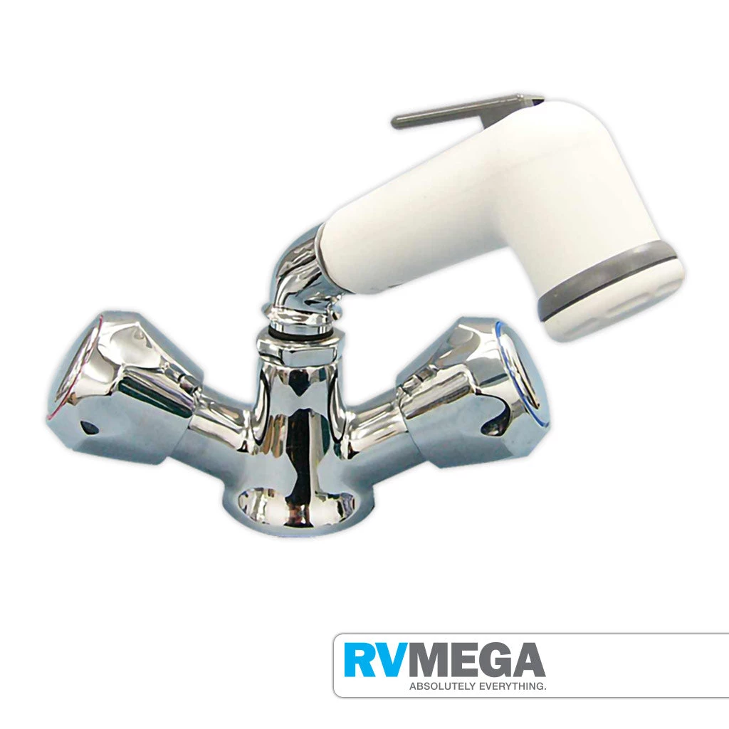 Trigger shower c/w sleeve & hose. White hand-piece. White hose standard. Mixer required.