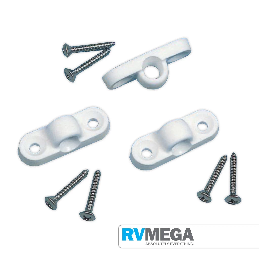Standard humpback awning brackets for screwing to the caravan, to accept awning pole hooks.