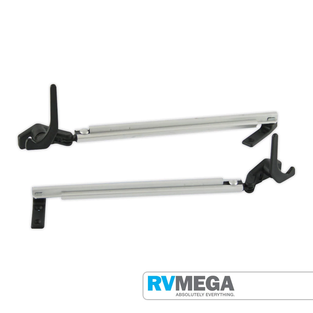 Caravan window stays with auto stay mechanism designed specifically to fit Polyplastic opening windows as fitted to many caravans and motorhomes.
