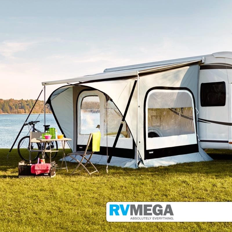 Thule QuickFit Easy Set-Up Awning Tent – A lightweight one piece tent slides easily into a caravan rail which fits neatly underneath the awning to create a double ceiling for better ventilation and insulation.