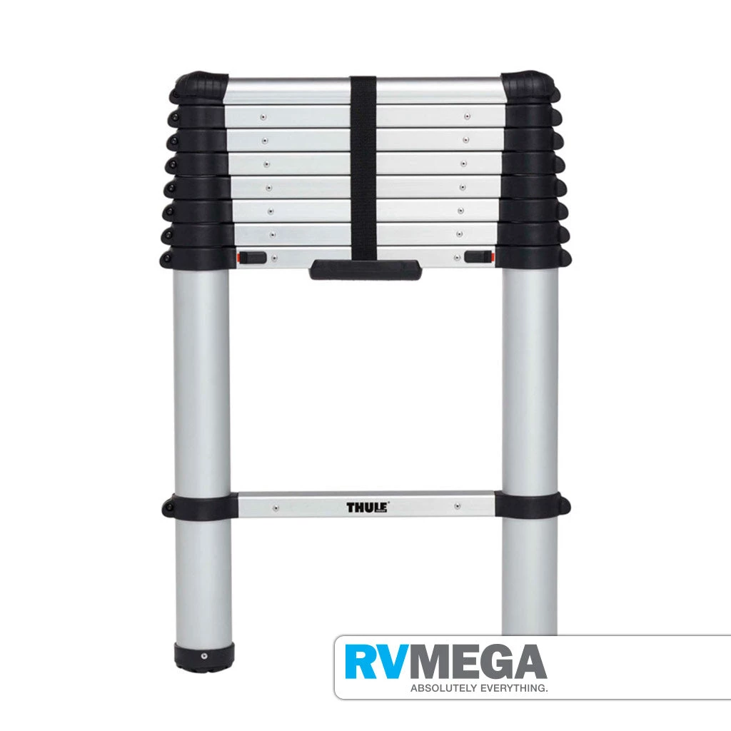 Telescopic ladder for easy access to roof-mounted accessories – safely installed using fixation kit.