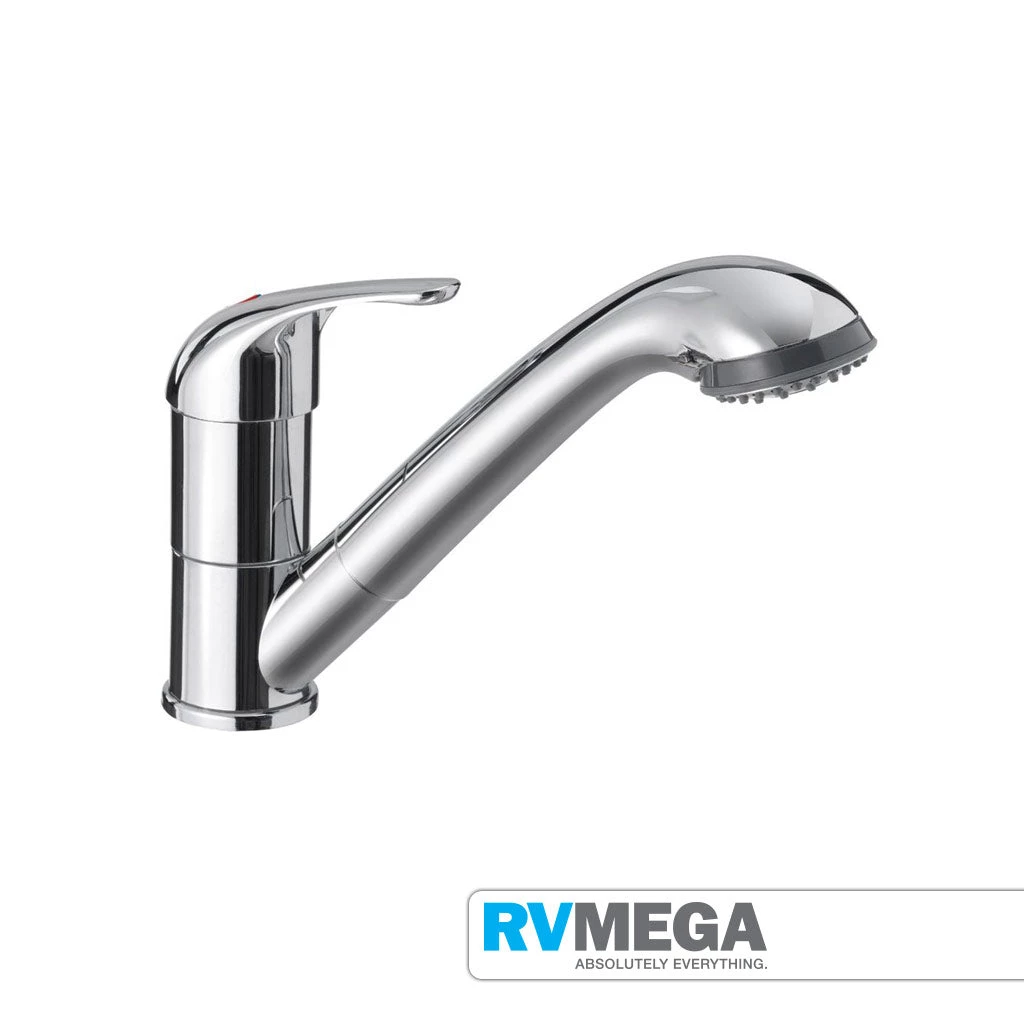 Reich Kama Mixer Tap with Single Lever in chrome with Julia Shower head, is a mono block mixer tap and shower, with pull-out shower head that offers home from home function, contemporary styling and superior quality for any caravan and motorhome washroom.