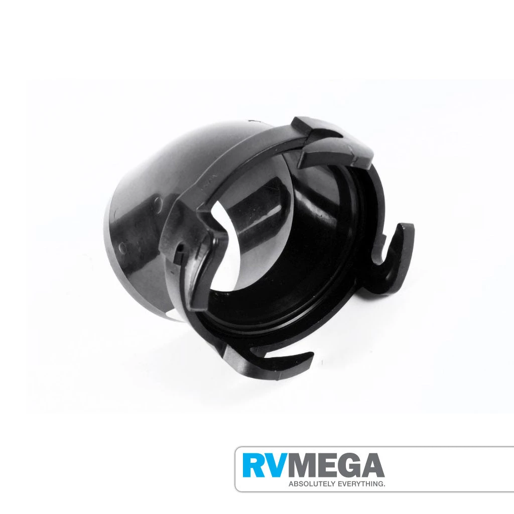 45 degree adapter reduces stress on hose while dumping. Fits all standard black waste valve systems.
