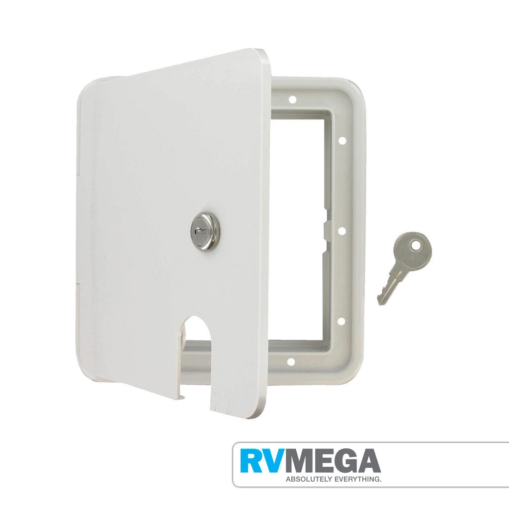 Electrical hatch designed for 16 amp power cable. With a handy slide window so you can close the door when hooked up.