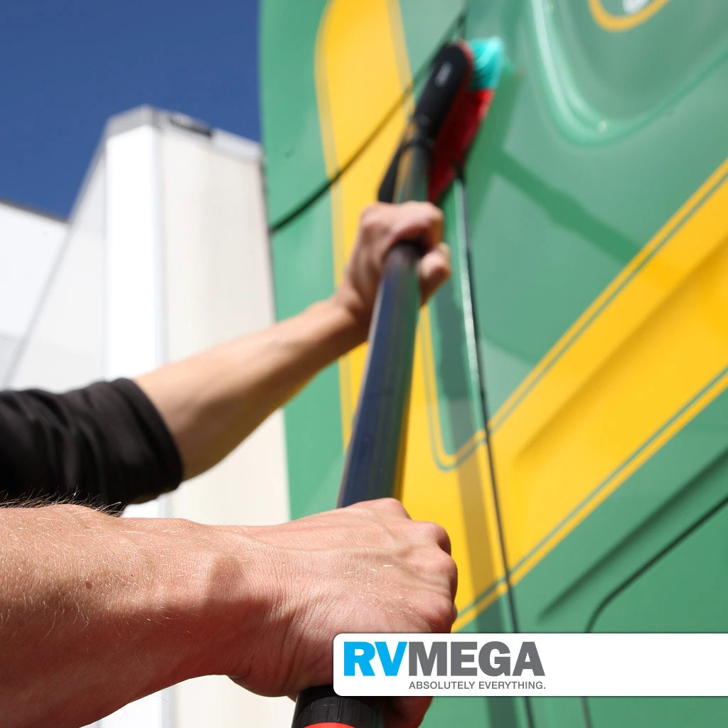 This professional telescopic water-fed handle (1600β2840 mm) has an insulated sleeve for a comfortable grip and a quick-release hose connector.